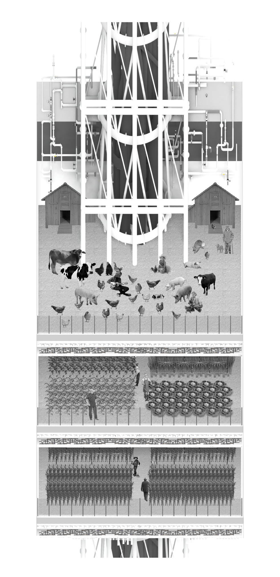 The tower orientation is positioned to make the most of the natural daylight for the sustainable farms on the tower. The sustainable farms face south to allow for as much exposure to the sun as possible for the crops and ensure a regular growing season.